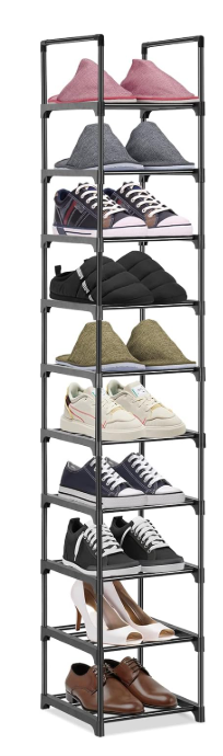 Hossejoy 10 Tiers Shoe Rack, Metal Shoe Storage Organiser, Slim Shoe Shelf Storage, Space Saving Tall Narrow Shoe Racks for Narrow Space, Bedroom, Living Room, Hallway, 28 x 30.5 x 175 cm, Black